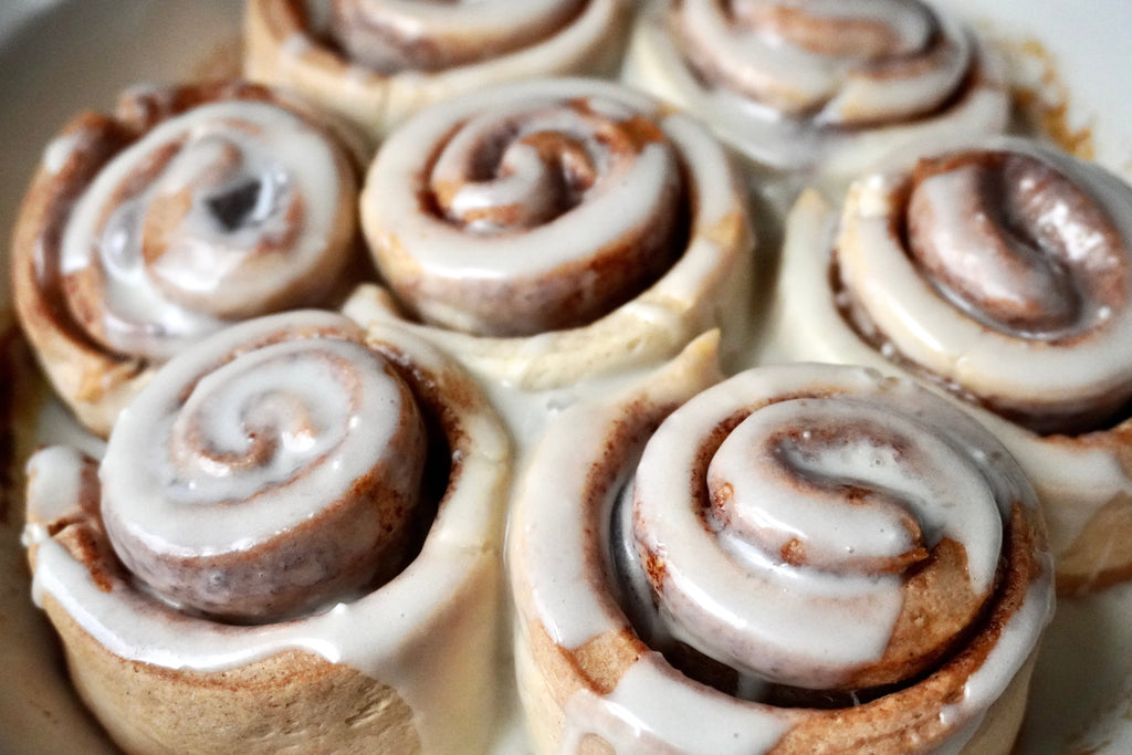 - Combine the glaze ingredients in a separate bowl and top the cinnamon rolls while still warm.