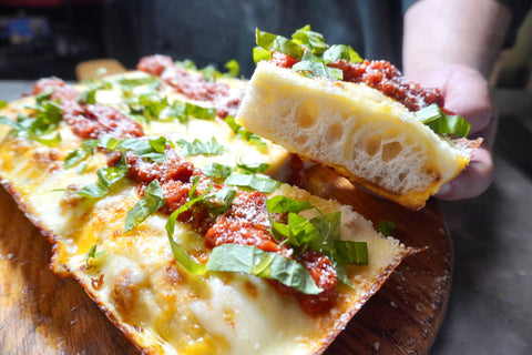 - An hour before baking, turn on your high heat oven (like an Ooni, Gozney, or Breville) and let it get up to temp. We recommend baking at the highest temperatures - 900 degrees or more for a true Neapolitanesque crust.