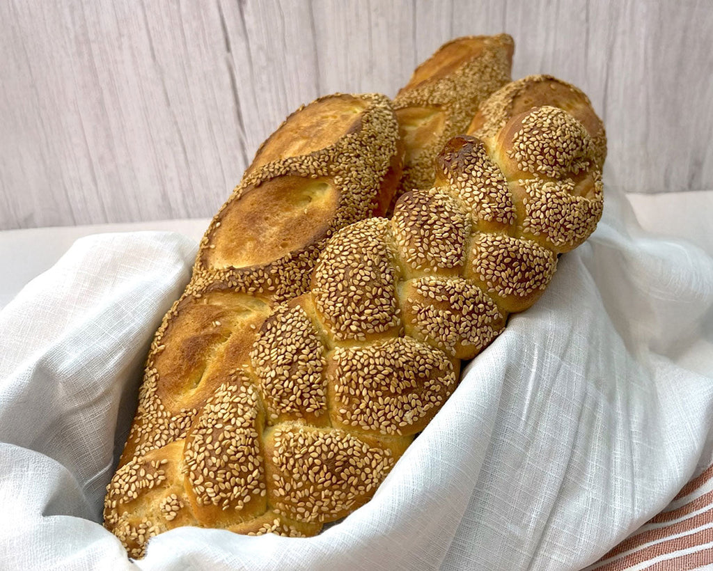 - When the heroes have doubled in size, remove the wet rags, add an egg white wash on top of them, coat them with sesame seeds, and score them using a bread lame or knife.